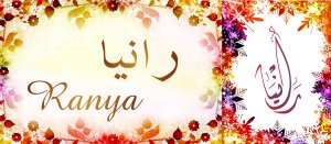 Signification (sens) du prénom Ranya (Ranya, Rania) رَانْيَا: Celle qui contemple et apprécie. Ranya, épouse du roi ‘Abdullâh II de Jordanie (1990).
