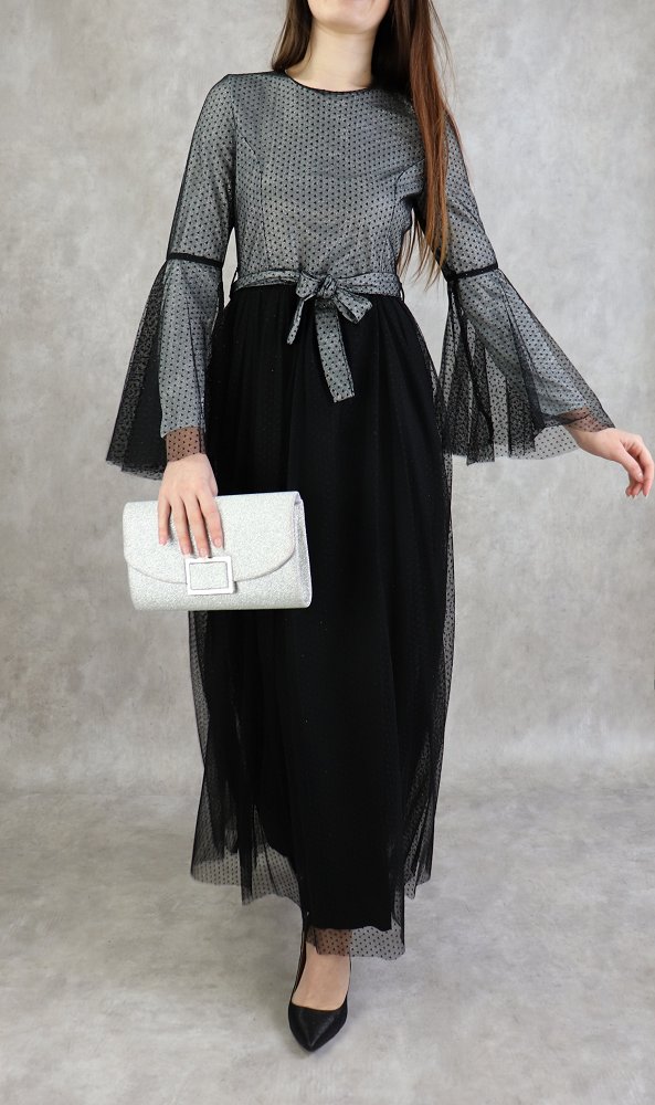 Robe de soirée longue élégante pailletée en tulle pour femme - Couleur argenté et noir Vetement & Accessoire