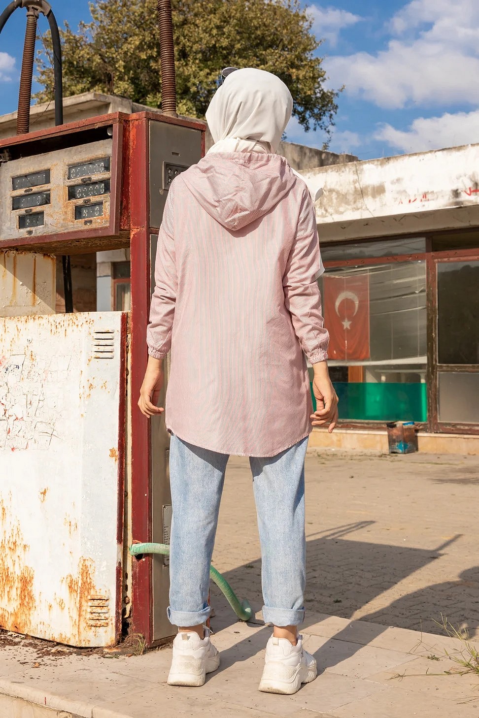 Sweatshirt long avec capuche style moderne décontracté et sport (Vetement voyage femme musulmane) - Couleur Rouge - REF. 32339 (19.90 €) - En Promotion à 16.90 €