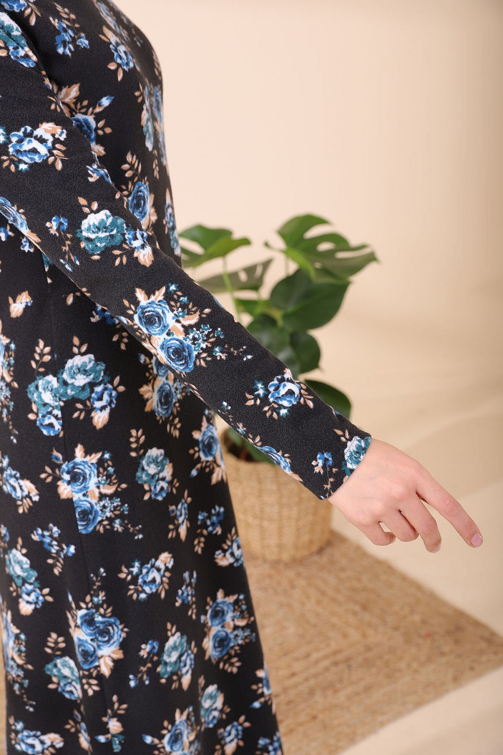 Robe longue a fleurs (Robes pour hijab) - Couleur noir et bleu