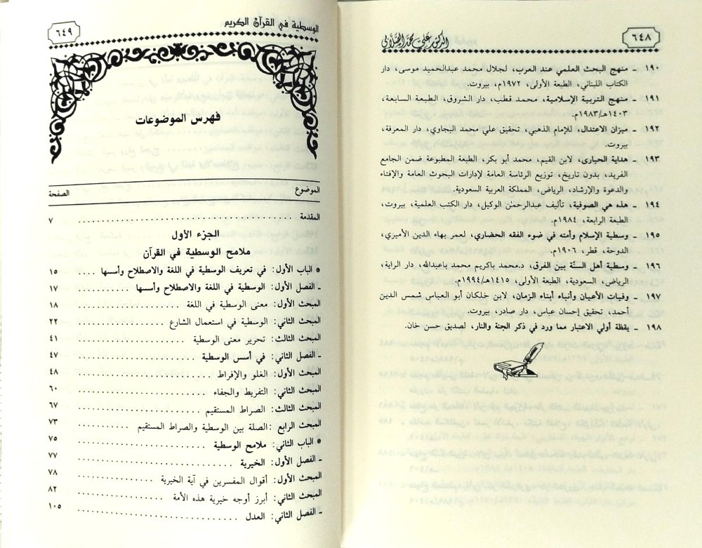 أصل هذا الكتاب رسالة علمية نال بها صاحبها درجة الماجستير من جامعة ام درمان الاسلامية في السودان . و قد اكدت اللجنة المشرفة على هذه الرسالة ان الجهد المبذول في هذه الرسالة يعادل مجهود رسالة الدكتوراه . فقد قام الدكتور علي الصلابي بالتبحر في عدد من آيات القرآن الكريم متفكراً في دلالته و مركّزاً على منهج الوسطية في القرآن الكريم .