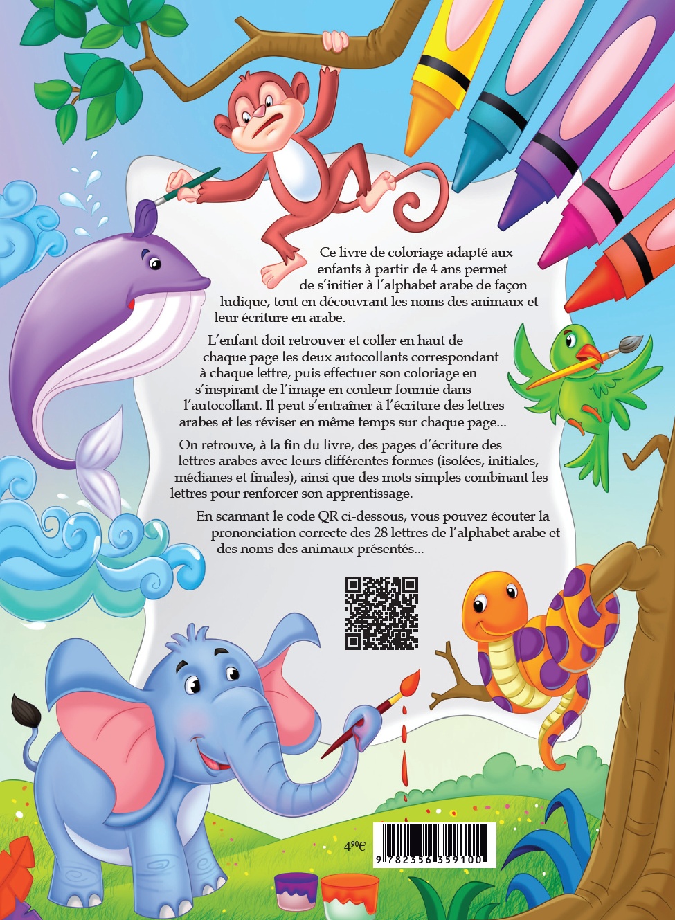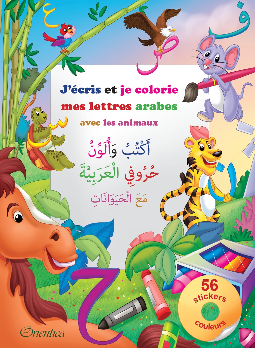 J’écris et je colorie mes lettres arabes avec les animaux (Cahier d'écriture et de coloriage avec 56 stickers) - أَكْتُبُ وَأُلَوِّنُ حُرُوفِي الْعَرَبِيَّةَ مَعَ الْحَيَوَانَاتِ - REF. 39936 (4.90 €)