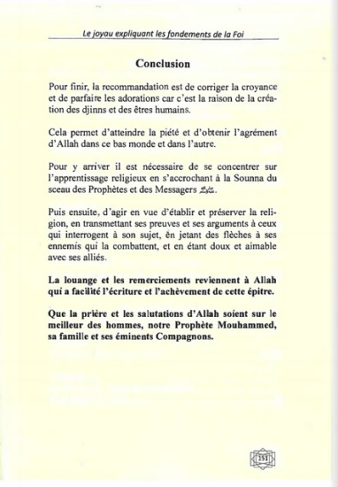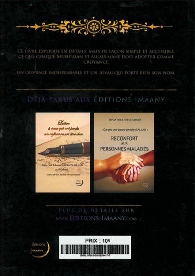 Ce livre explique en détails, mais de façon simple et accessible ce que chaque musulman et musulmane doit adopter comme croyance. Un ouvrage indispensable et un joyau qui porte bien son nom. Ecrit par Sheikh Mouhammed Yousri avec les annotations de Sheikh Abd el Aziz ar-Râjihi.