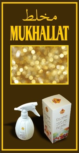 Eau parfumée désodorisante Musc d'Or "Mukhallat" - Pour literies, salons, rideaux, vêtements, sièges de voitures, etc. Fini les mauvaises odeurs. Bien agiter avant utilisation.