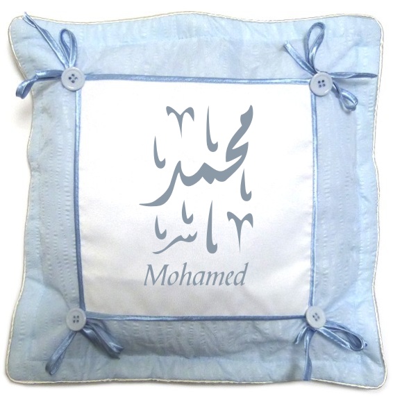 Vous pouvez également choisir un style d'écriture en arabe. La même taie d'oreiller existe également en rose.