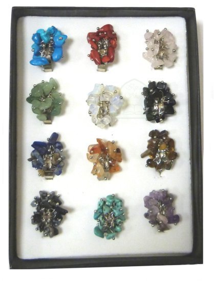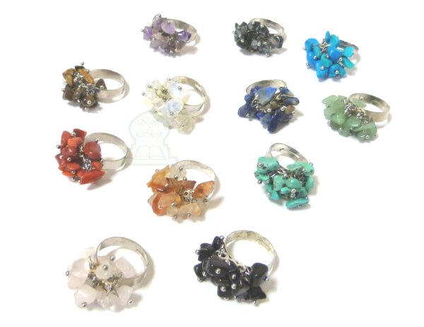 Très belle série de bagues fantaisie ajustables, en métal argenté, et serties de pierres 100% naturelles, dont l'agencement rappelle la texture du quartz... De très belles couleurs sont disponibles.