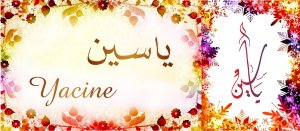 Signification (sens) du prénom Yâsîn (Yassin, Yacine) يَاسِين: Le prénom Yâsîn se rapporte aux premières lettres de la 36ème Sourate du Coran : Yâ’ (ي) et Sîn (س), soit Yâ-Sîn. Kâtib Yâsîn, un grand écrivain algérien (1929-1989).