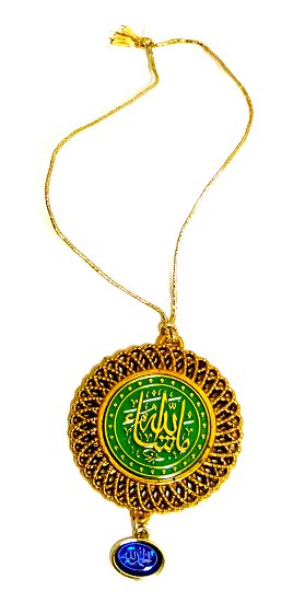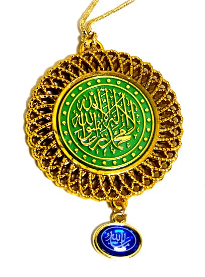 Pendentif vert et doré "Allah & Mohamed (SAW)" - REF. 6264 (2.00 €)