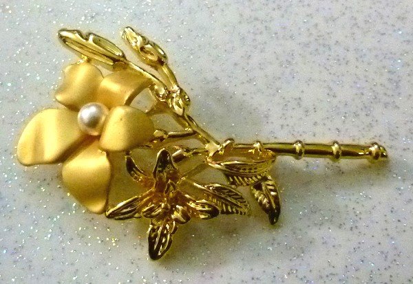 Broche dorée sous forme d'une feuille dotée d'une perle blanche - REF. 12123 (3.90 €)