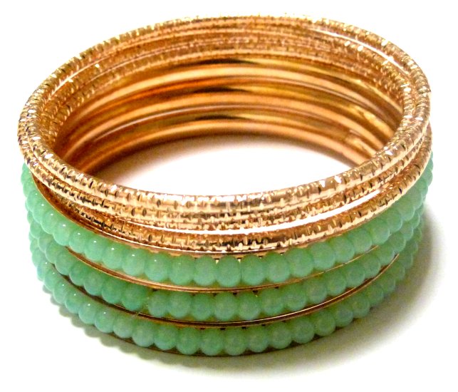 Lot de 7 bracelets en metal (3 bleu-verts et 4 dores)