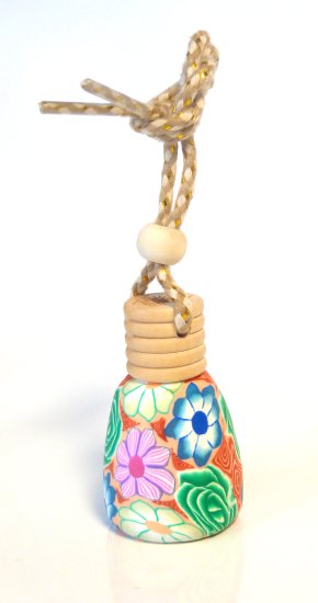 Joli flacon en verre avec bouchon bois pour diffuser le parfum de façon harmonieuse, à suspendre dans la voiture (au rétroviseur par exemple). Peut être utilisé également dans une armoire ou tout autre endroit à parfumer.