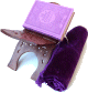 Pack cadeau mauve : Le Saint Coran (arabe-français-phonétique) couverture similicuir de luxe + Porte-Coran en bois sculpté + Tapis uni en velours - REF. 23112 (43.00 €)