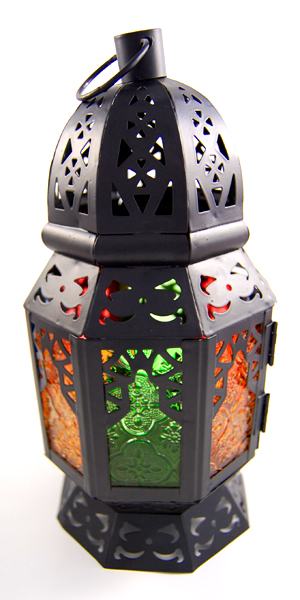 Lanterne métallique style mille et une nuits avec vitres en verre multi-couleurs - REF. 24741 (14.00 €)