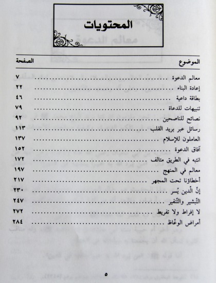 عكف المؤلف في هذا الكتاب على إلقاء الضوء على معالم الدعوة ووسائلها السليمة ، فأورد تنبيهات ونصائح للدعاة والمربين والعاملين للإسلام تساعدهم على تحقيق أهدافهم ، وتظهر الأخطاء السابقة وسبل تفاديها . كما يركز على رسالة التبشير وليس التنفير وختم إصداره بأمراض الوعّاظ وسبل التخلص منها .
