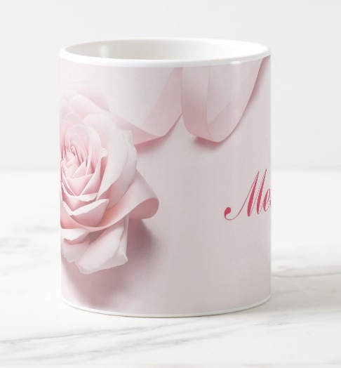 Mug avec messages personnalisés (coeurs et pétales de rose)