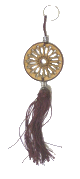 Pendentif porte-clés en bois de forme ronde sculpté d'arabesques et pompon en sabra de couleur marron - REF. 15675 (3.00 €)