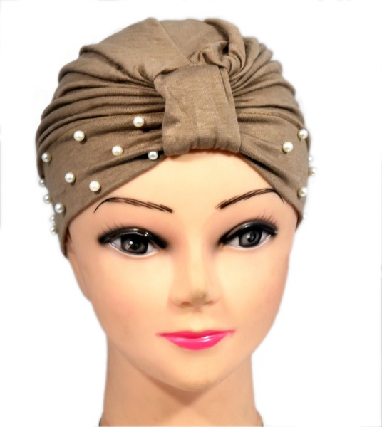 Bonnet égyptien perlé de couleur taupe  Vetement & Accessoire