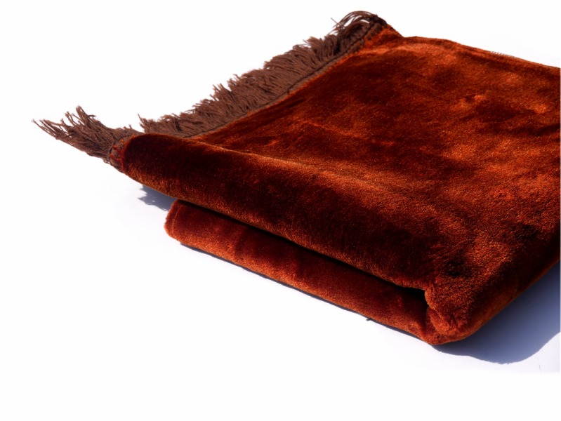 Tapis adulte très doux au toucher de type velours, couleur marron unie, sans aucun motif pour une concentration maximale dans la prière.
