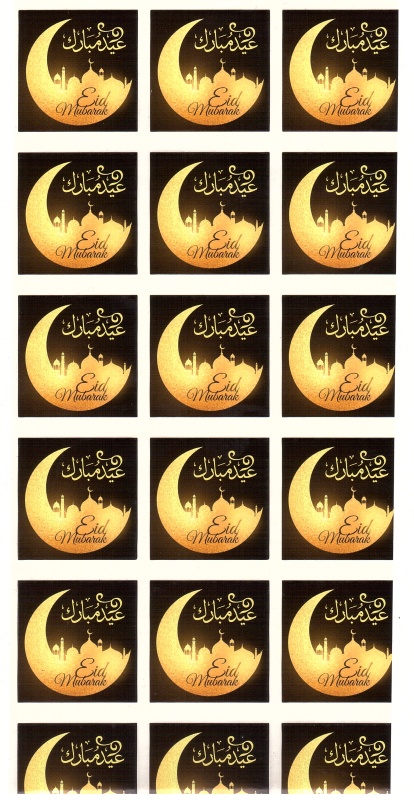 Pack de 18 autocollants pratiques à coller sur vos pack cadeaux, vos sacs cadeaux, vos gobelets, etc. pour préparer votre repas ou votre fête de l'Aïd.