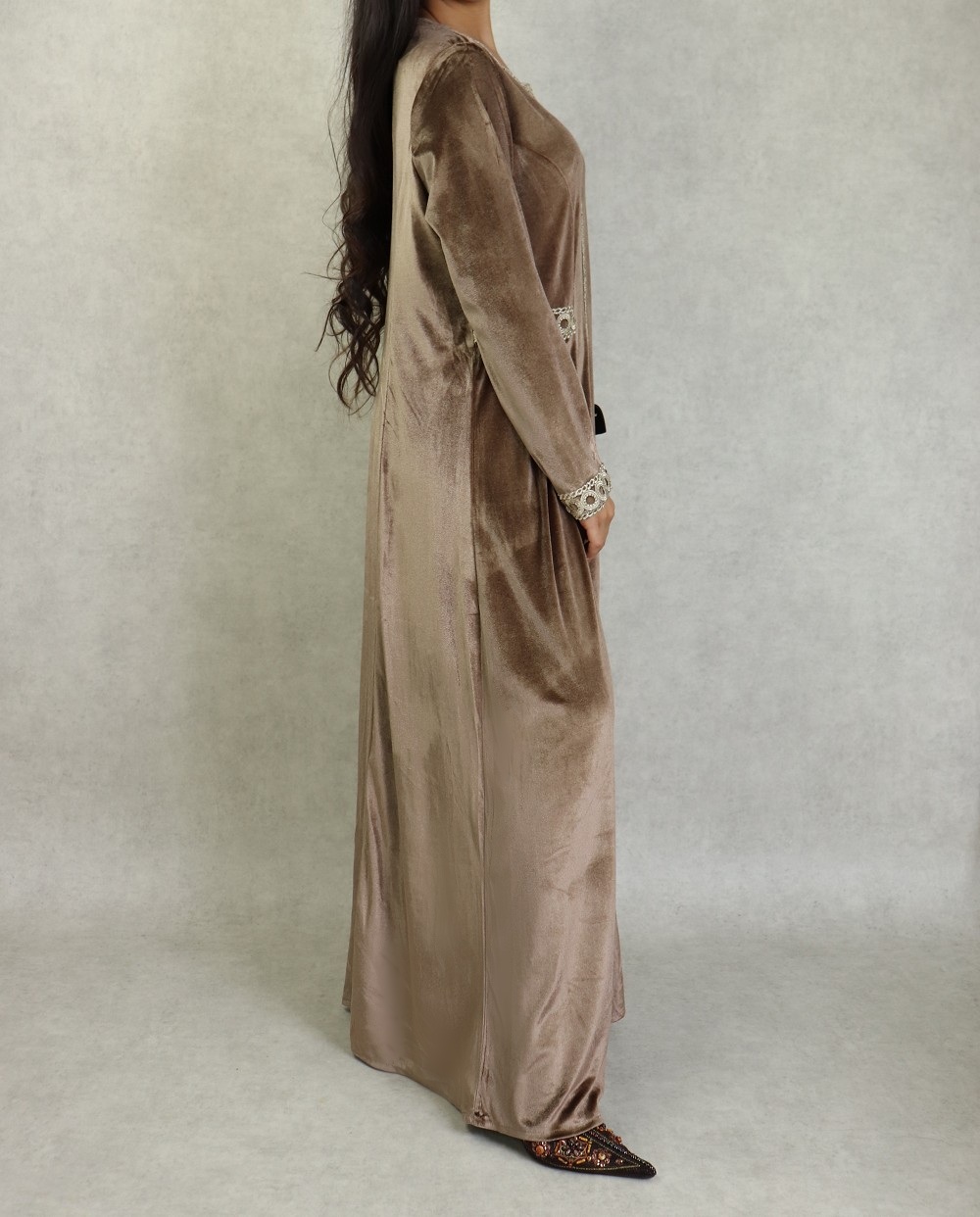 Robe longue en velours brodée fermeture zip pour femme (Automne-Hiver) - Couleur Brun Vetement & Accessoire