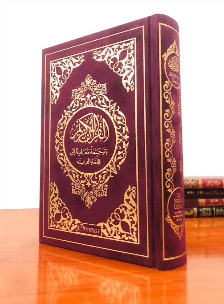 Le Noble Coran bilingue (arabe/français) avec couverture cartonnée de type daim, doux au toucher. Idéal pour offrir.