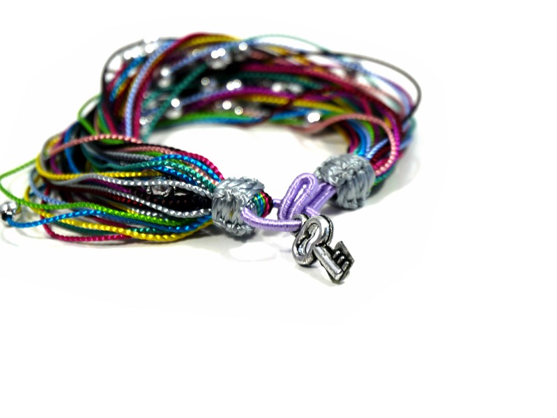 Bracelet artisanal en sabra multicouleurs avec pendentif cle