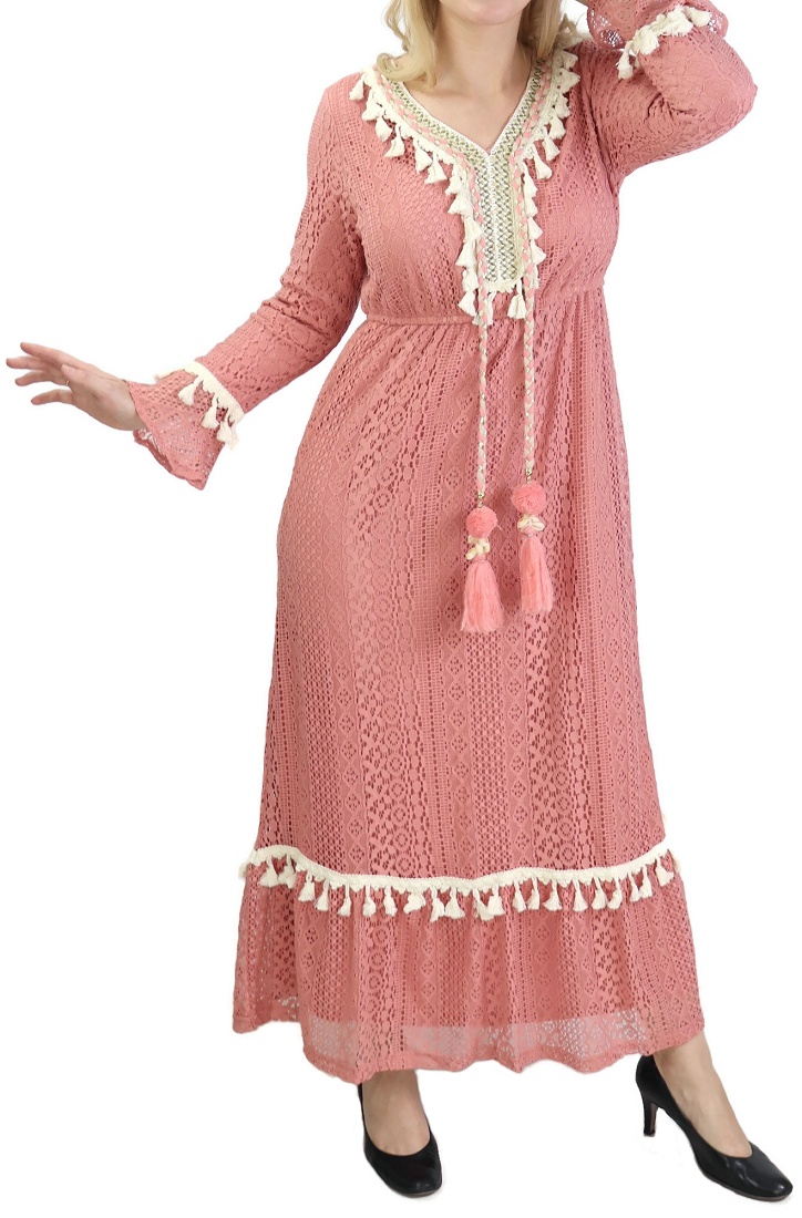 Robe longue décorée de pompons pour femme - Couleur Rose - REF. 33555 (29.90 €)