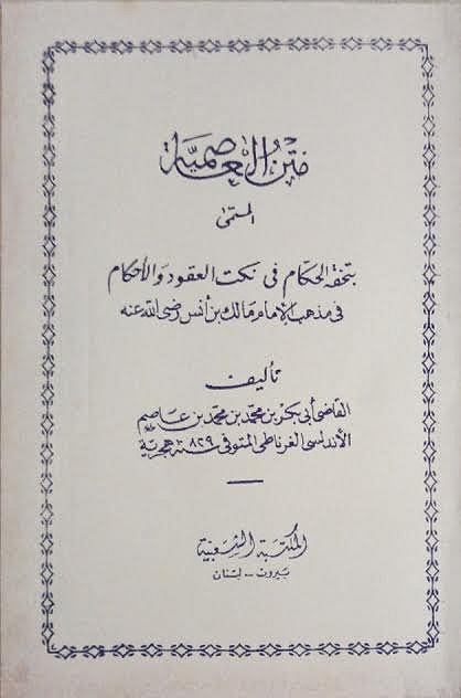 متن العاصمية المسمى بتحفة الحكام في نكت العقود والأحكام في مذهب الإمام مالك بن أنس رضي الله عنه Livre