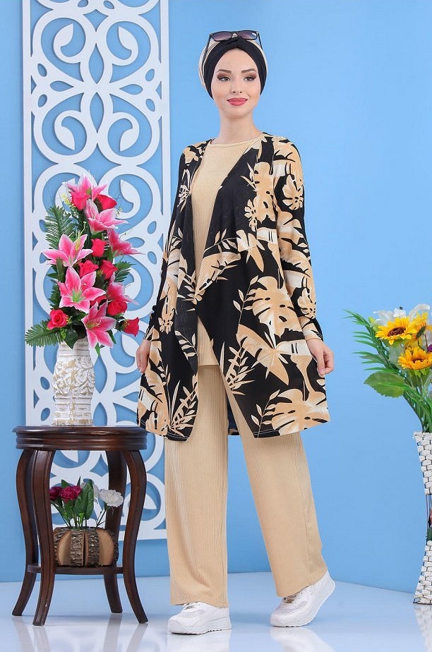 Ensemble casual moderne veste et pantalon pour femme (Boutique Musulmane Hijab France) - Couleur noir - REF. 37511 (35.00 €)