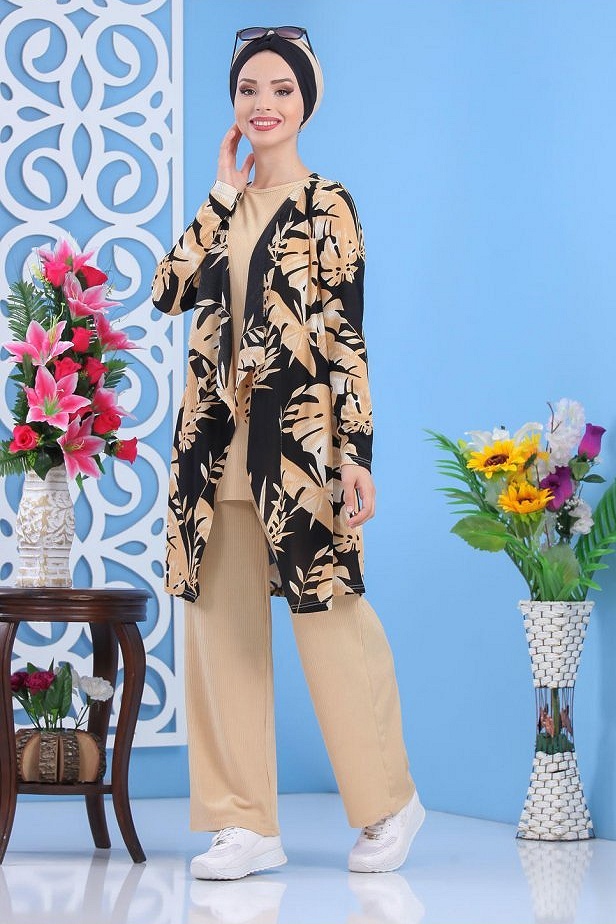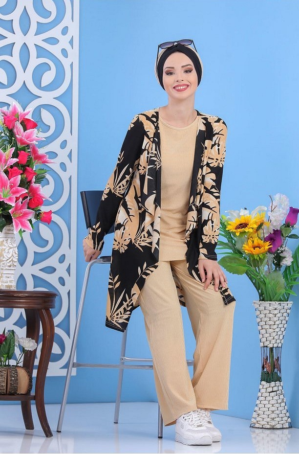 Ensemble survêtement 2 pièces pour femme (Mode musulmane - Prêt-à-porter Modest Fashion France) - Couleur beige - REF. 33263 (29.90 €)
