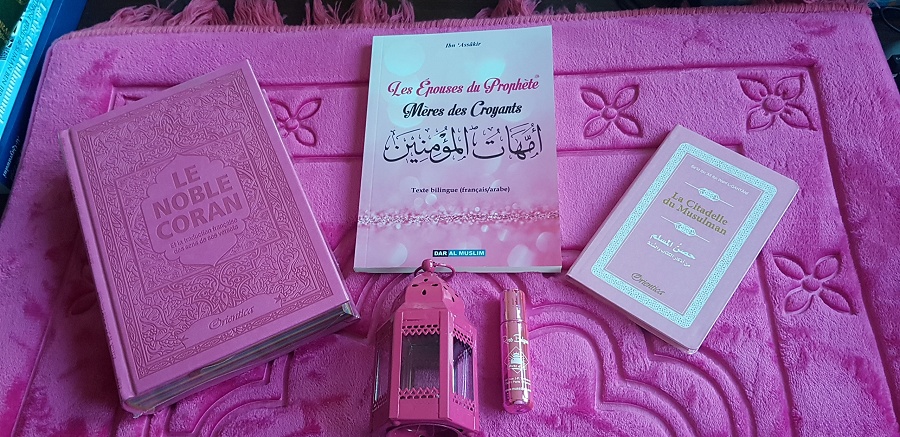 Cadeau pour femme musulmane : La Citadelle du musulman + Coran Chapitre Amma + parfum de couleur rose assortis (Cadeaux pas cher) - REF. 35034 (9.90 €)