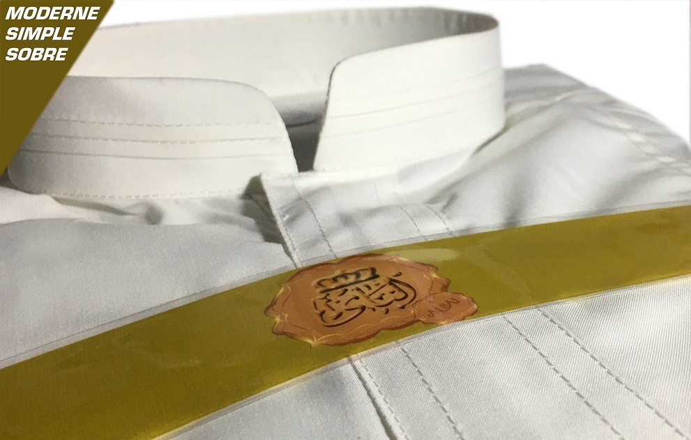 Qamis de couleur blanc cassé tirant légèrement vers le bleu.