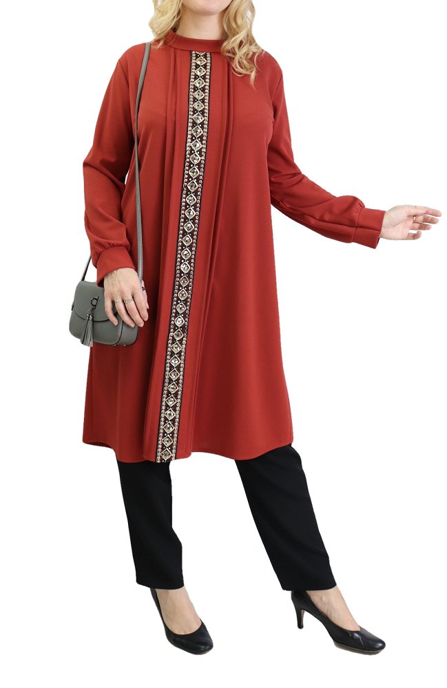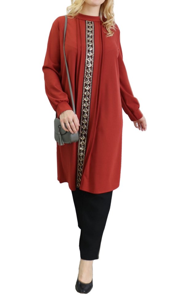 Tunique longue avec dorures pour femme (Vetement pour Hijab, hidjab ou hijeb en ligne) - Couleur brique - REF. 36458 (24.90 €)
