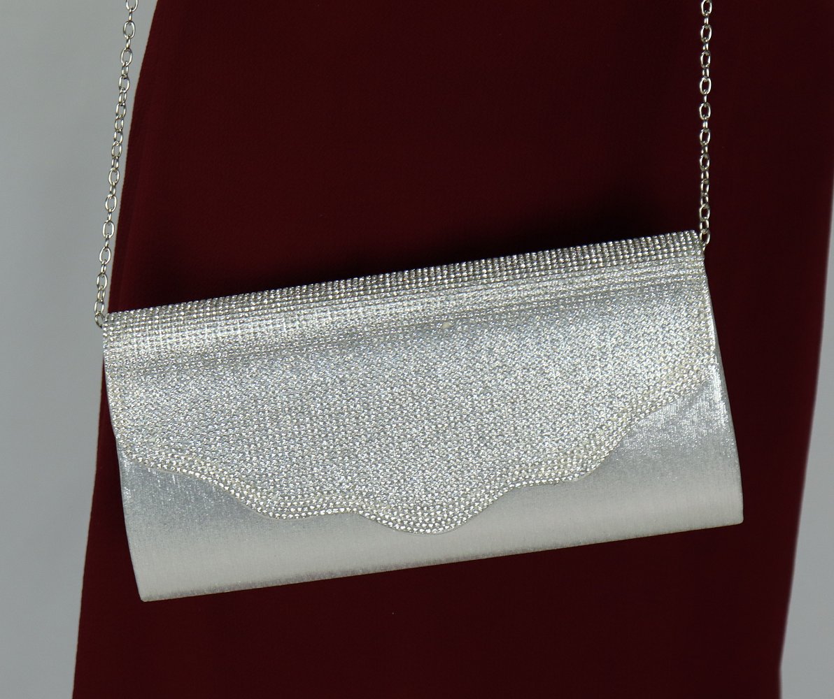 Pochette à rabat paillettes structurée avec chaîne (Sac à main femme) - Couleur argentée Vetement & Accessoire
