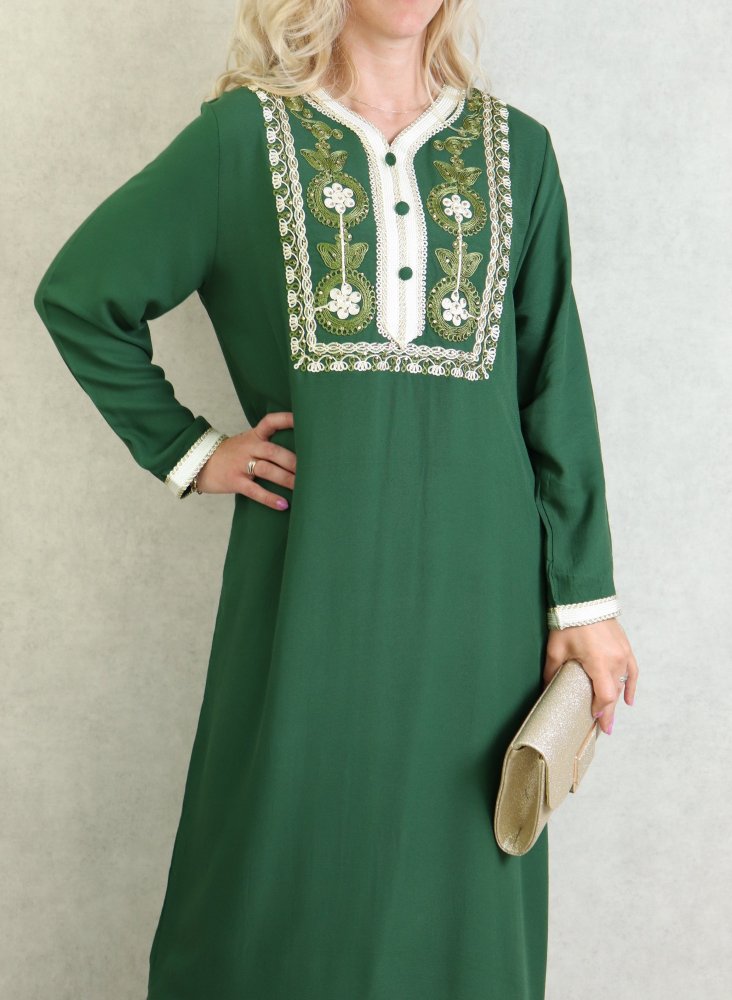 Robe Algérienne avec broderies et strass - Couleur Vert sapin Vetement & Accessoire