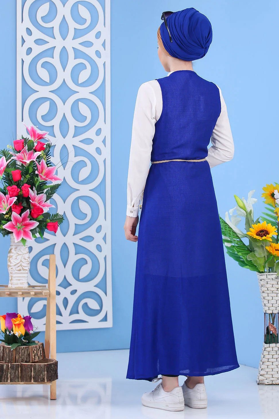 Gilet long, sans manches. Ceinture effet corde avec des finitions en bois multicolores.