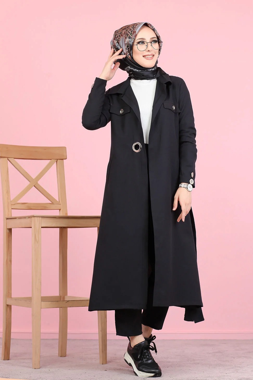 Trench coat Long pour femme (Vetement Mode Musulmane automne Hiver) - Couleur noir - REF. 34637 (29.90 €)
