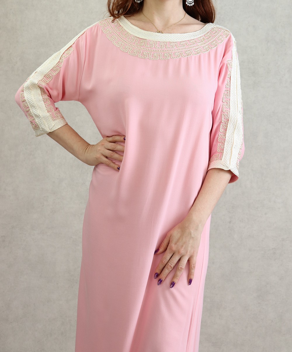 Robe de Style Oriental brodée manches trois quarts - Couleur Rose poudré Vetement & Accessoire