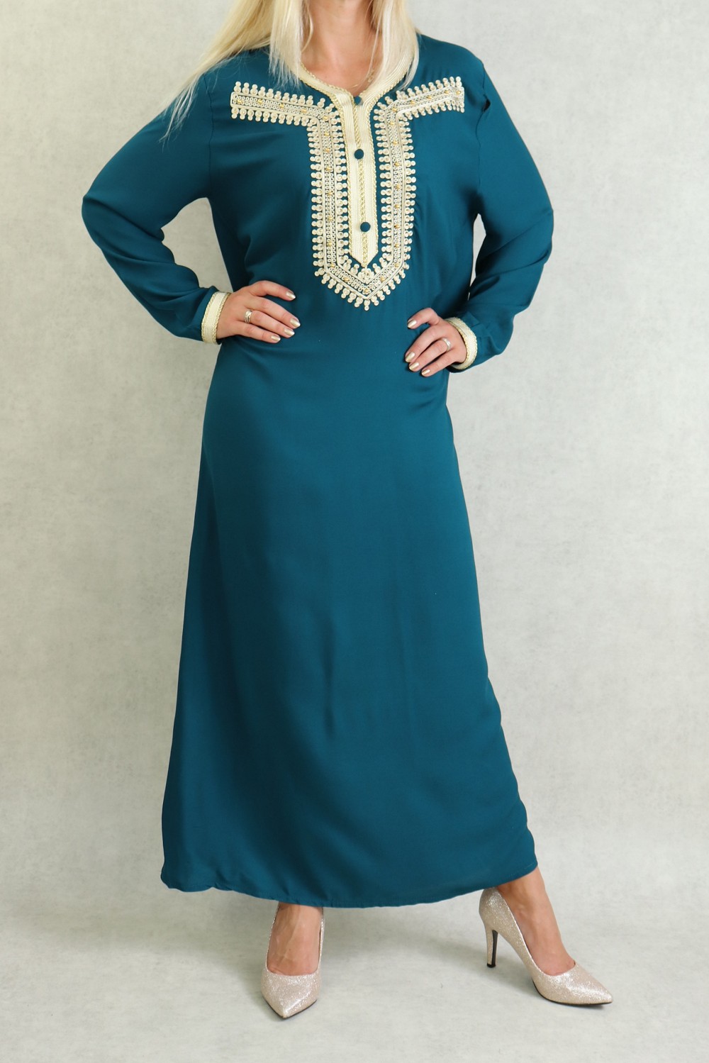 Robe longue style oriental avec borderie originale sous forme de coeur pour femme - Couleur émeraude - REF. 37678 (24.90 €)