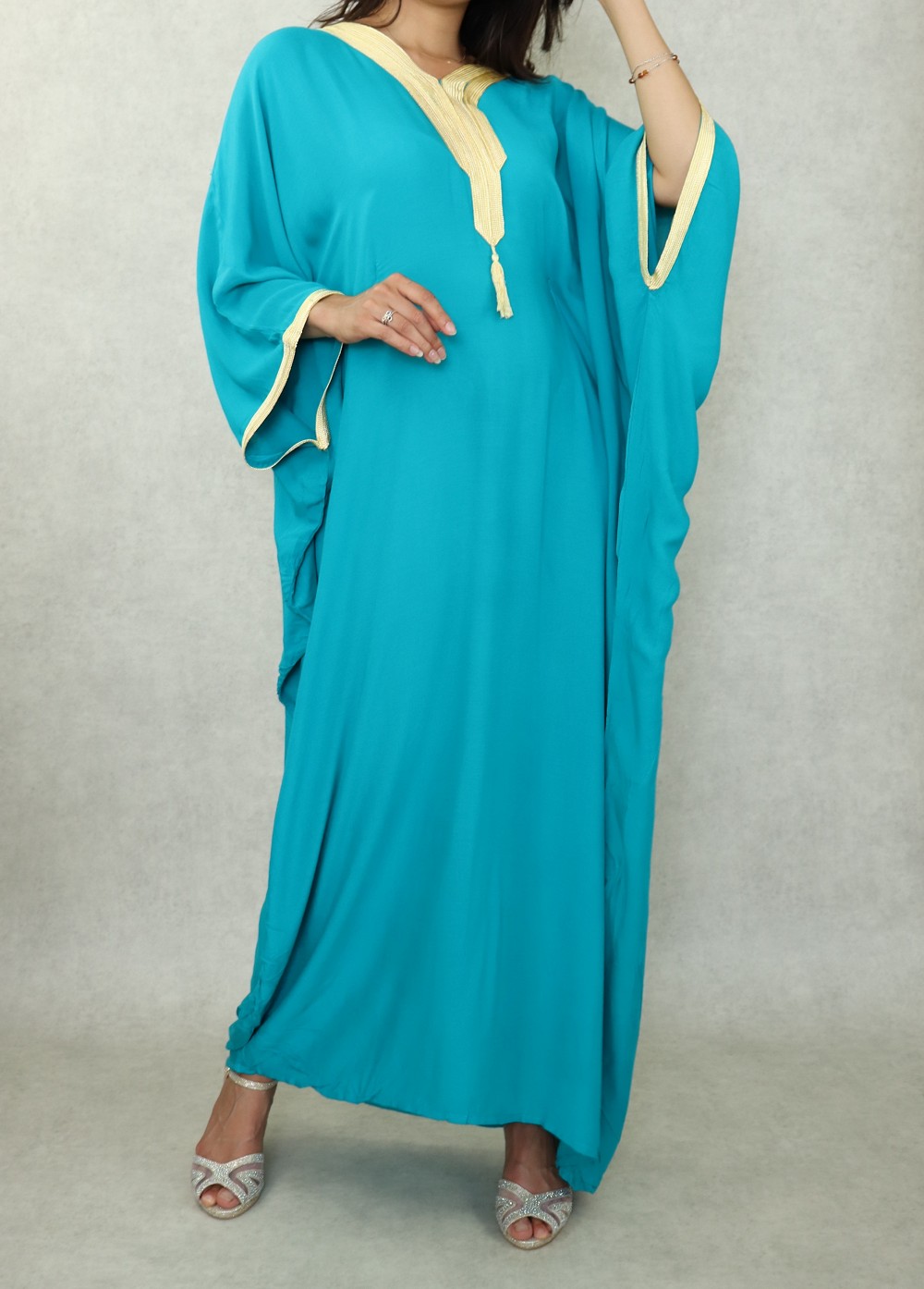 Robe Algérienne avec broderies et strass - Couleur Cyan - REF. 32351 (25.00 €)