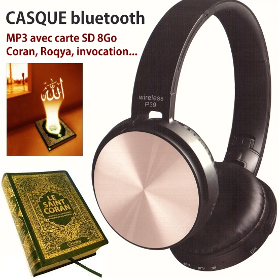 Casque sans-fil (Bluetooth - Stéreo Super Bass - FM Radio - MP3 - Kit main libre pour recevoir des appels téléphoniques) avec carte mémoire 8 Go préchargée avec nombreux contenu (voir le détail ci-dessous).