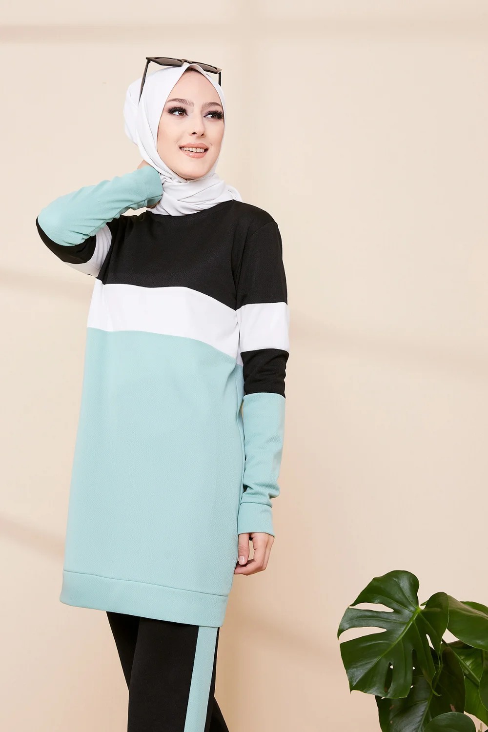 Ensemble décontracté pour femme (Hijab moderne et sport) - Couleur noir et blanc - REF. 36259 (28.00 €)