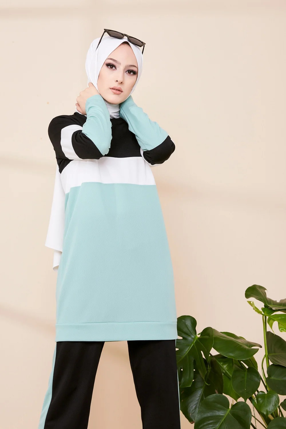 Ensemble survêtement 2 pièces de couleur noir et menthe (Boutique en ligne de Vêtement turque pour femme) Vetement & Accessoire