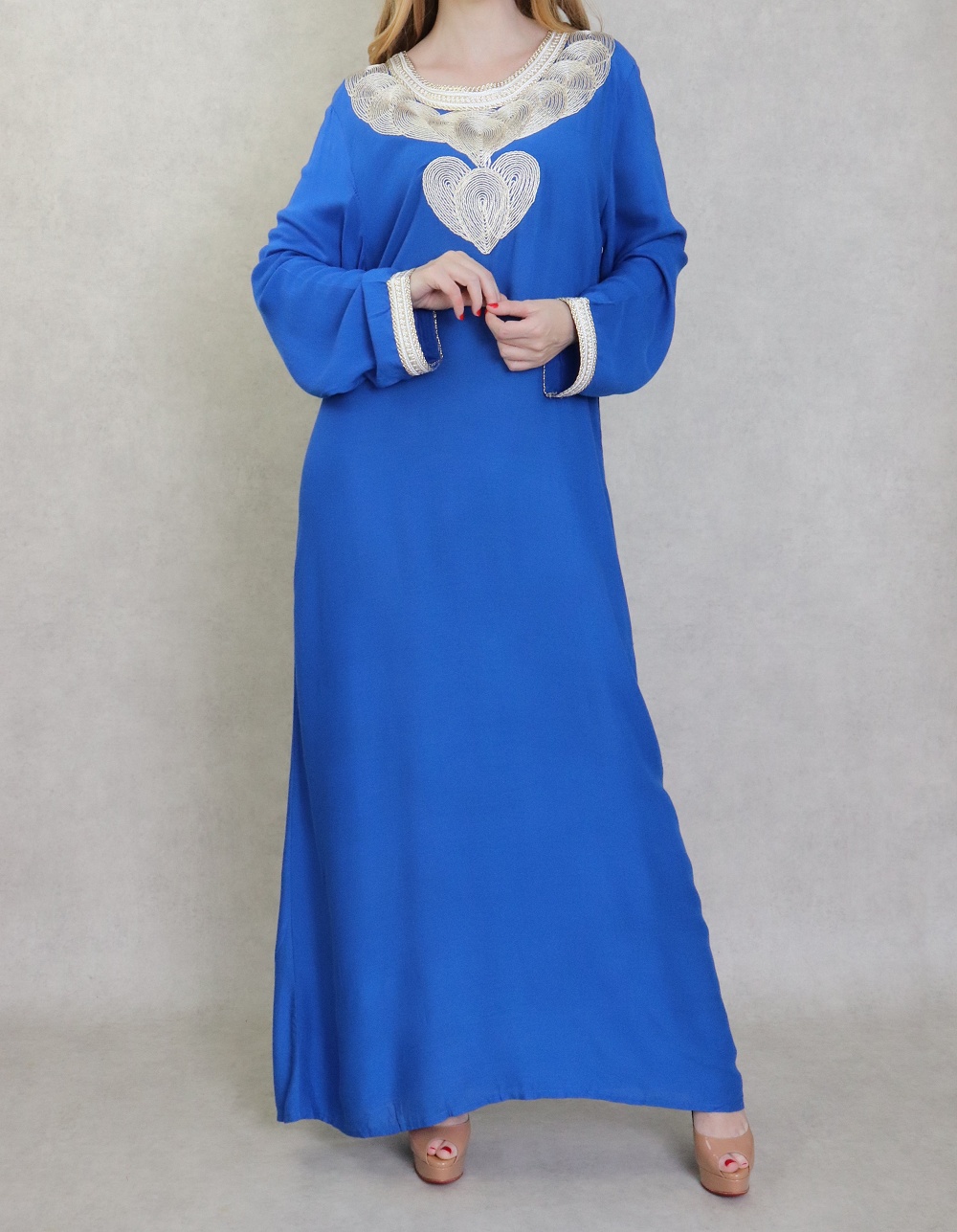 Robe longue style oriental avec borderie originale sous forme de coeur pour femme - Couleur Bleu roi Vetement & Accessoire