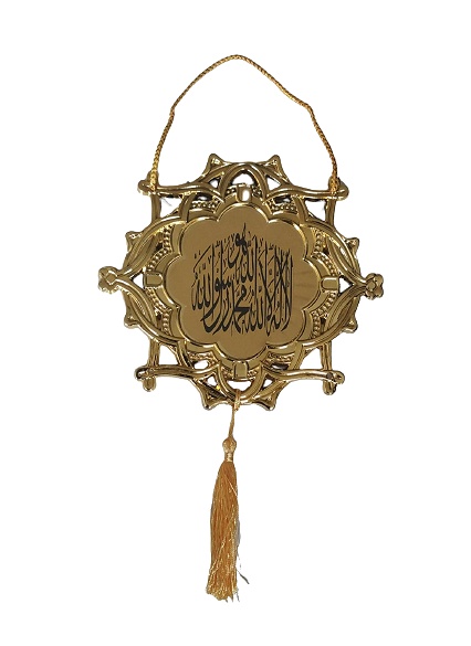 Décoration islamique dorée contenant la Chahada (lâ ilâha illallâh muhammad rassulullah)
