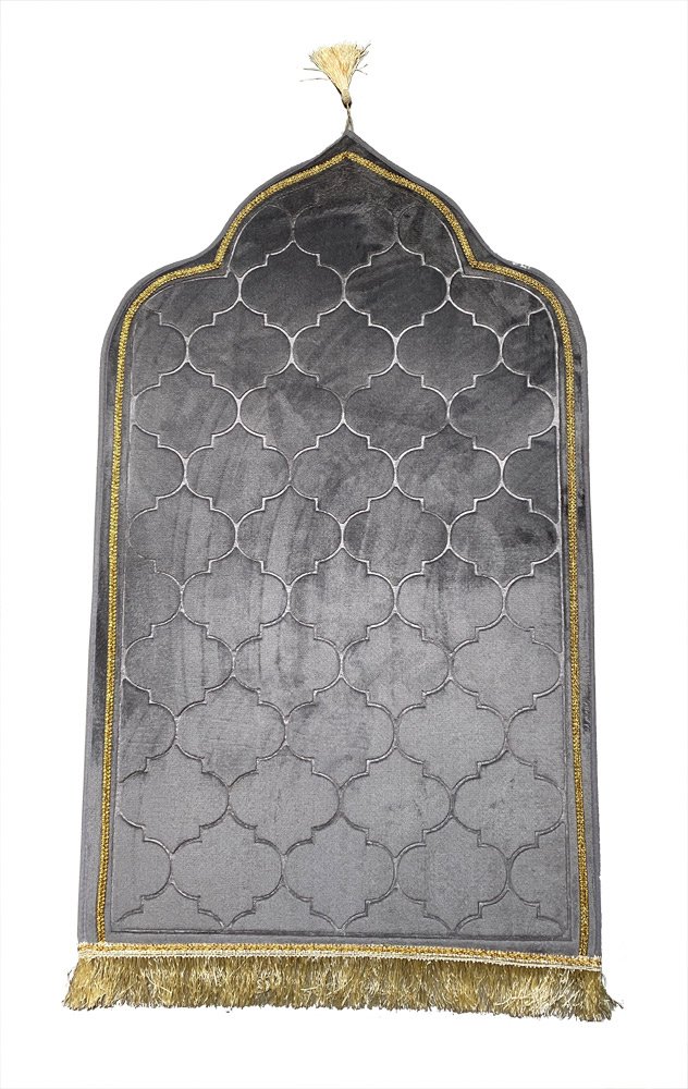 Tapis de prière de luxe doré pour adulte sous forme de mosquée (Mihrab) motif mosaïque - Couleur gris foncé - REF. 39559 (14.90 €)