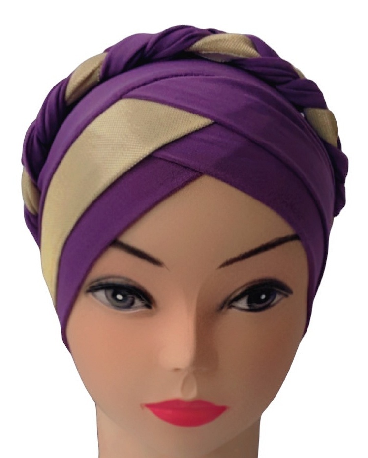 Bonnet hijab croisee a tresse pour femme - Couleur Violet