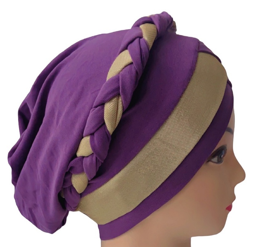 Bonnet hijab croisée à tresse pour femme - Couleur Violet Vetement & Accessoire