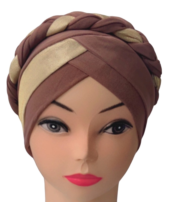 Bonnet hijab croisée à tresse pour femme - Couleur Marron clair Vetement & Accessoire