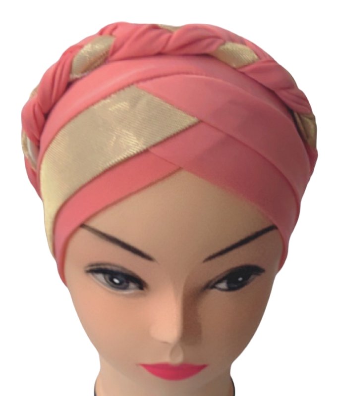 Bonnet hijab croisée à tresse pour femme - Couleur Saumon Vetement & Accessoire